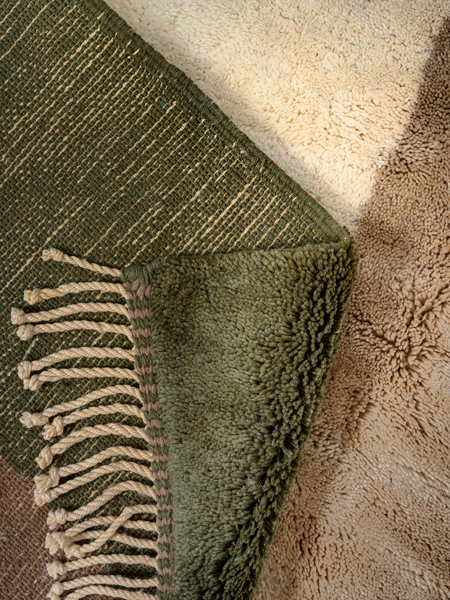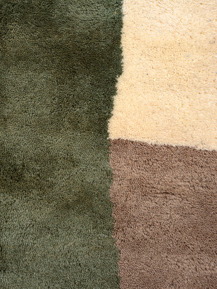 Soukina leads a group of 35 artisans from a village just outside Beni M’rirt in the Middle Atlas Mountains. Founded in the early 2000s by Soukina’s late mother, Ketlouma, the collective specializes in medium to high hand-knot rugs—a style named after the region—as well as M’rirt Zanafi rugs, their unique interpretation of the Zanafi style from the southeast. Traditional rugs from this area are crafted using a thick knotting technique, resulting in an extra-plush texture.