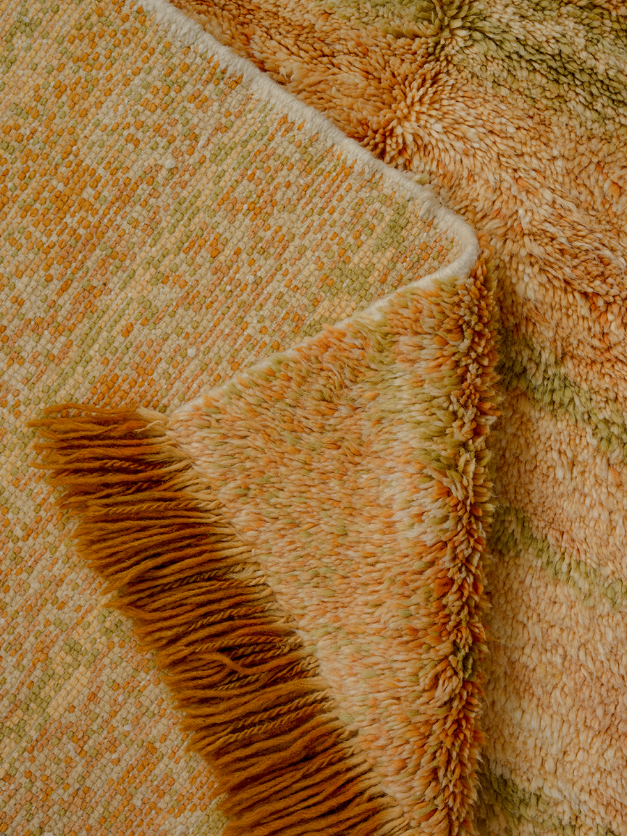 The majority of these rugs come from the Middle Atlas and High Atlas Mountains. The local sheep in these colder climates have a thicker coat to sustain them during the winter months, which impacts the thickness of the wool, and in turn, contributes to the height of the pile.