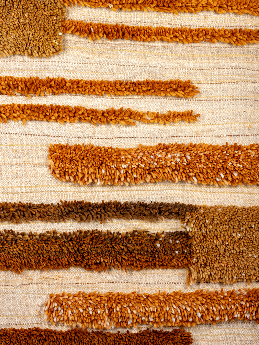 Fadma leads this group of artisans located in a small village just outside Ait Ourir, about 45 minutes from Marrakech. Many of the artisans, including Fadma herself, originated in the Siroua region near Tazenakht, an area renowned for its deep weaving heritage, before moving closer to Marrakech in search of better opportunities while carrying their craft with them. The collective specializes in using naturally dyed Siroua wool and works in both flatweave and hand-knot techniques. They are among the few artisans still practicing Tighonjjaj, a rare, ancestral knotting method that traces back generations in the Siroua mountains. Developed by Amazigh women to create rugs that could endure the harsh mountain winters while showcasing their family’s artistry, Tighonjjaj requires twisting each strand before knotting, adding time and skill to each piece. Today, this technique has become increasingly rare, preserved by only a few master weavers who continue to pass this knowledge from mother to daughter, ensuring the tradition lives on.