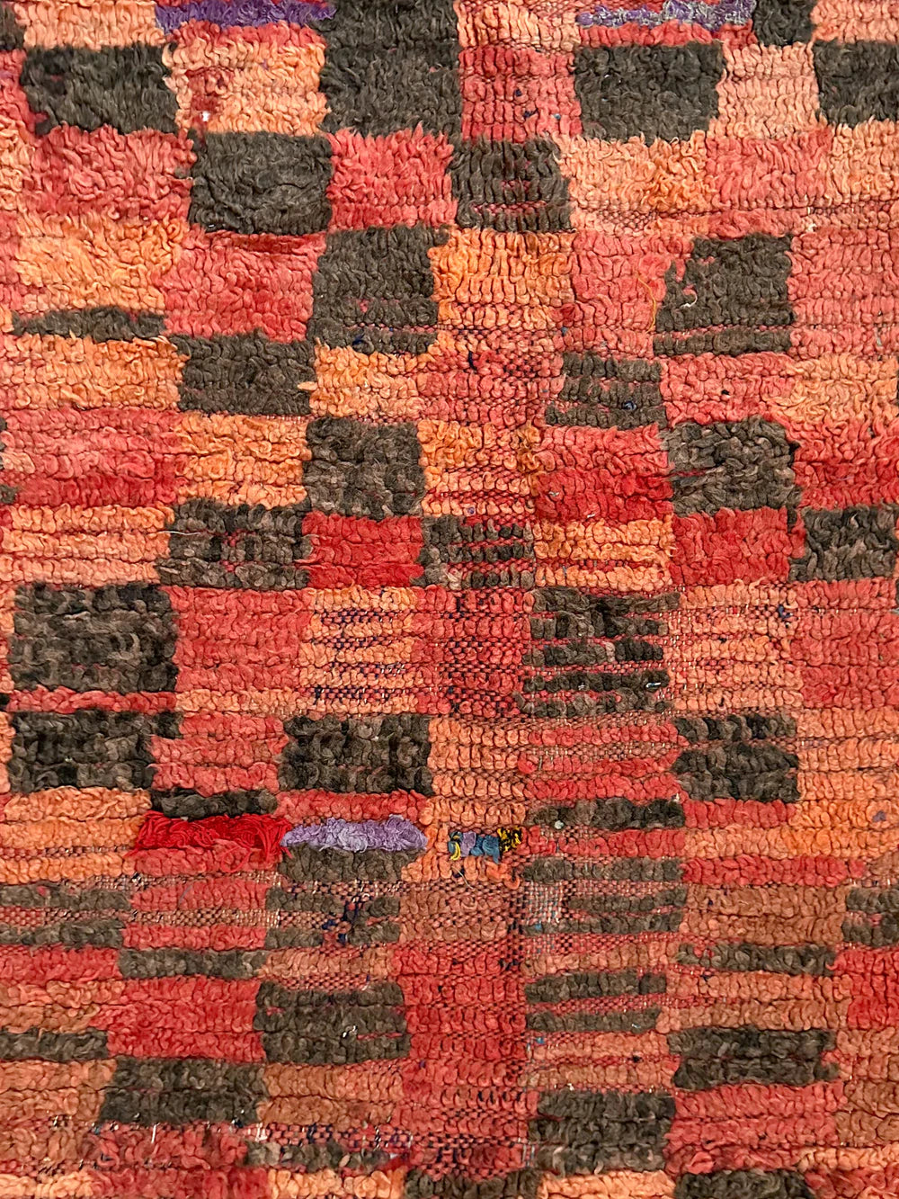 Boujad rugs originate from the Al Haouz region of Morocco and are celebrated for their distinctive and vibrant aesthetic. These rugs often showcase a myriad of bold colors. One of the defining features of Boujad rugs is their use of geometric shapes, abstract forms, and symbolic motifs passed down through generations, each telling a story of the weaver's cultural heritage and artistic expression. The weaving technique results in a less dense pile compared to other Moroccan rugs, giving them a distinct texture.