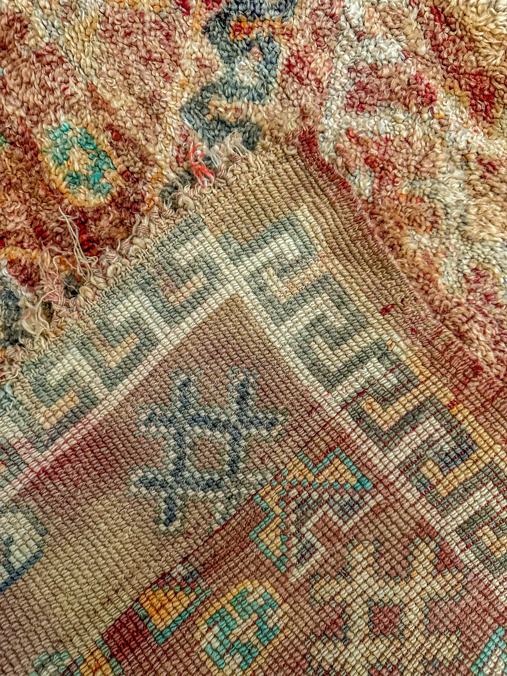 Most vintage rugs you will find in local Moroccan markets are purchased by male brokers, who visit neighboring villages and buy up all the pieces they can in one transaction.