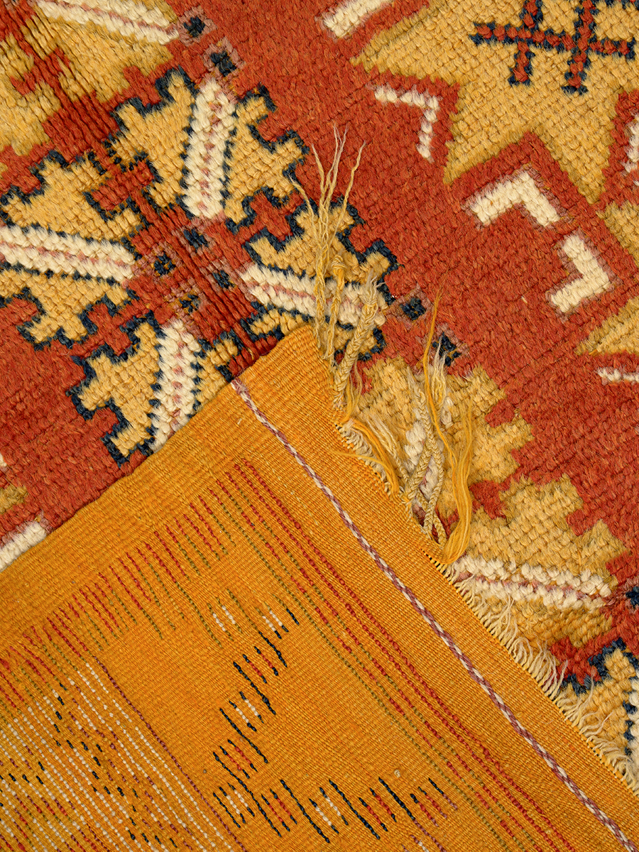 The Timnay Association is located in the N'kob Village on the foothills of the Siroua mountain range. The majority of artisans belong to the Ait Ouaghrda Tribe. The Association was founded in the 1980s. Today, it has 15 artisans working in the collective, which is run by Kebira. They produce a wide variety of weaves, from low hand-knot to intricate hanbels.