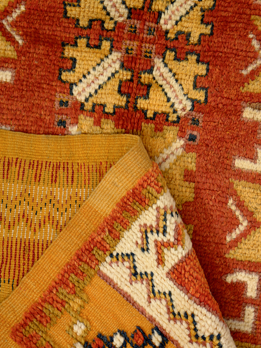 One telltale way to spot vintage rugs is by their odd shapes, as they may have been made to fit into old buildings, or specific spaces generations ago.