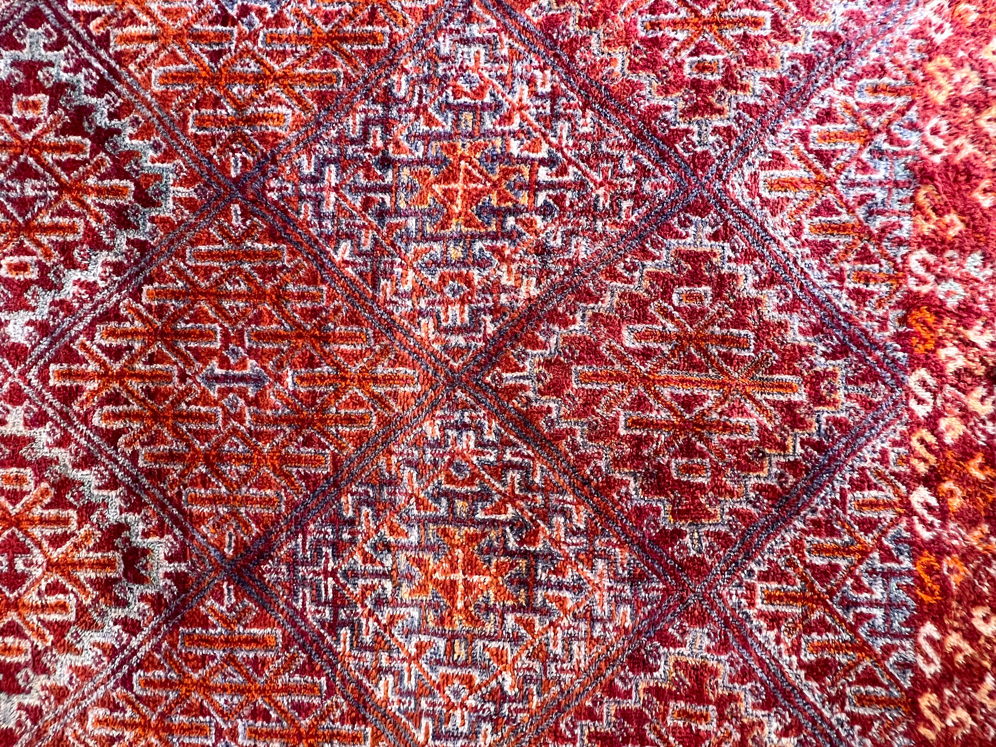 Our process is different, as we work directly with the women selling these heirloom rug pieces. We visit their homes and neighborhoods to see the pieces in-person and negotiate face-to-face.