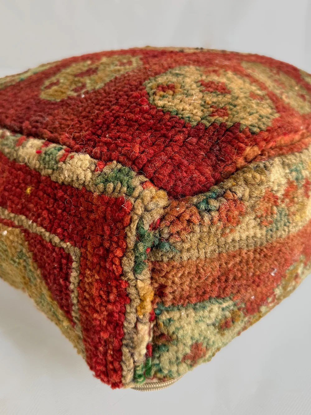 Vintage Beni M'Guild Pouf - Red, Green Accents - Salam Hello