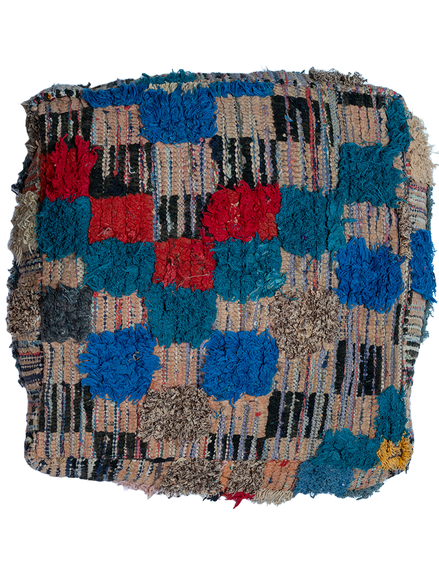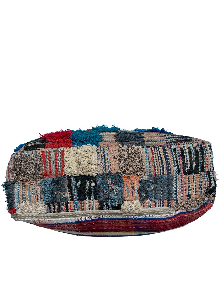 Vintage Boucherouite Pouf - Mixed Pile Grid - Salam Hello