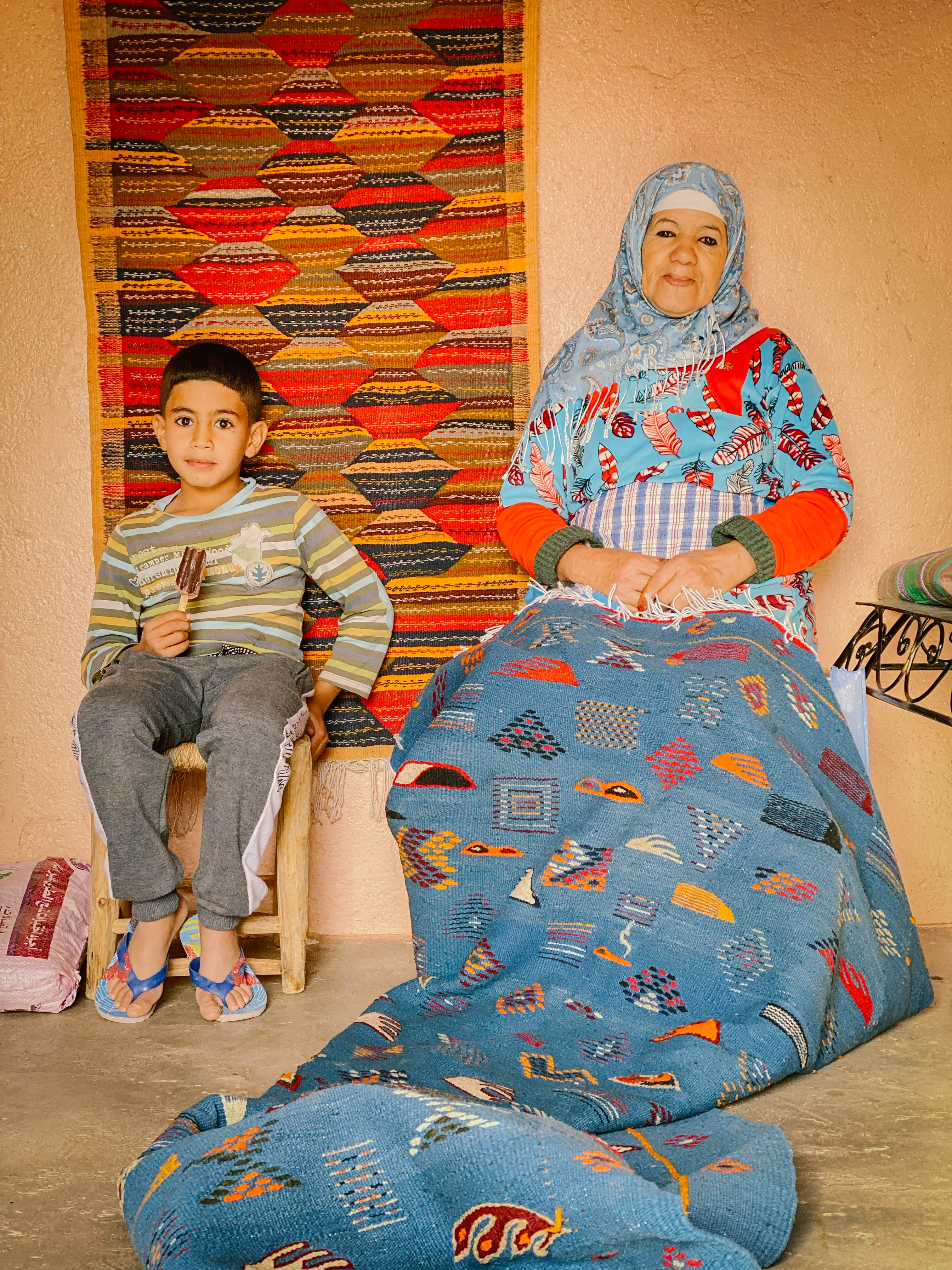 Our process is different, as we work directly with the women selling these heirloom rug pieces. We visit their homes and neighborhoods to see the pieces in-person and negotiate face-to-face.
